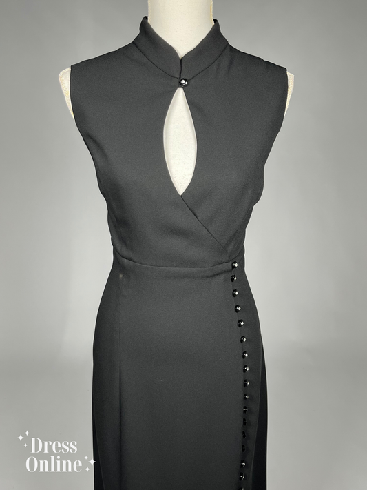 Zwarte Vintage Avondjurk met Keyhole Detail en Knoopsluiting Maat XL - 274