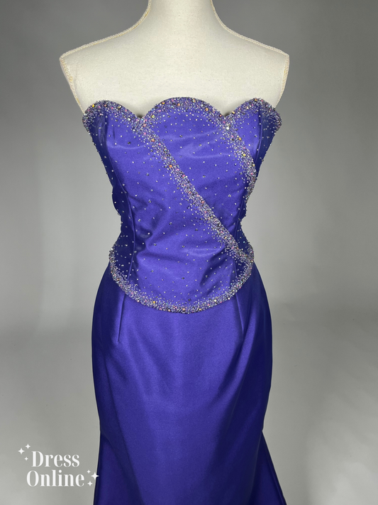 Paarse Vintage Avondjurk met Gedetailleerde Kralenversiering Maat L -275