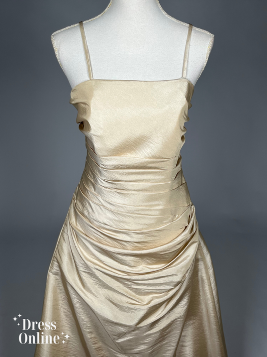 Gouden Avondjurk met Gedrapeerde Details en Spaghettibandjes Maat L -282