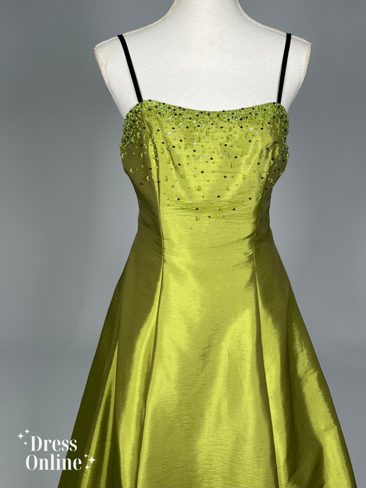 Olijfgroene Galajurk met Strass en Veterdetail Maat L - 247