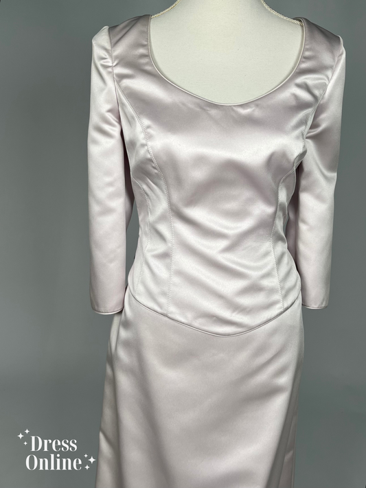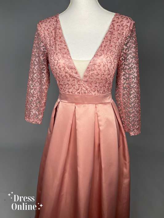 Licht roze Satijnen Galajurk met Lange Mouwen Maat L - 248