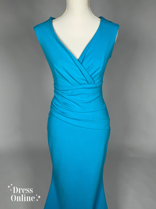 Lange Galajurk in Blauw met V-Hals en Plooien Maat M -233