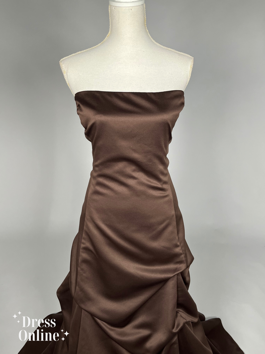 Vintage Bruine Strapless Galajurk met Drapering Maat (X)XXL- 241