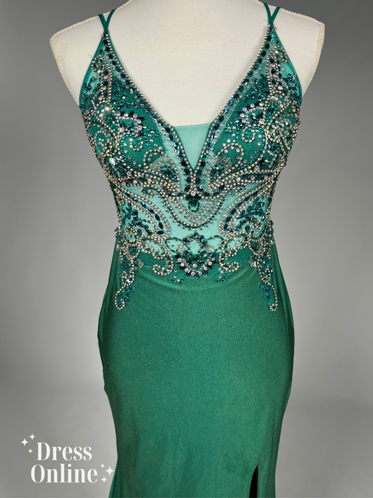 Elegante Groene Galajurk met Luxe Kralenversiering - Maat XS - 402