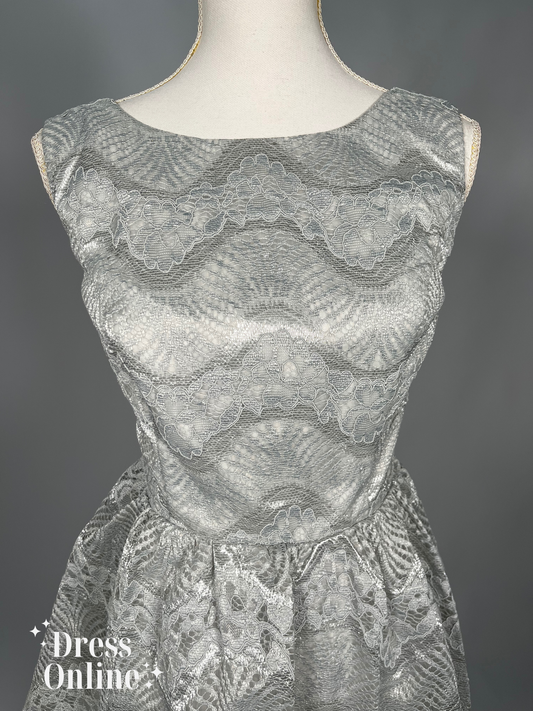 Verleidelijke Zilvergrijze Cocktailjurk met Kant en Tule - Maat M - 392