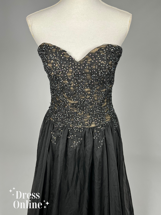 Glamoureuze Zwarte Galajurk met Sprankelende Versieringen - Maat S - 400