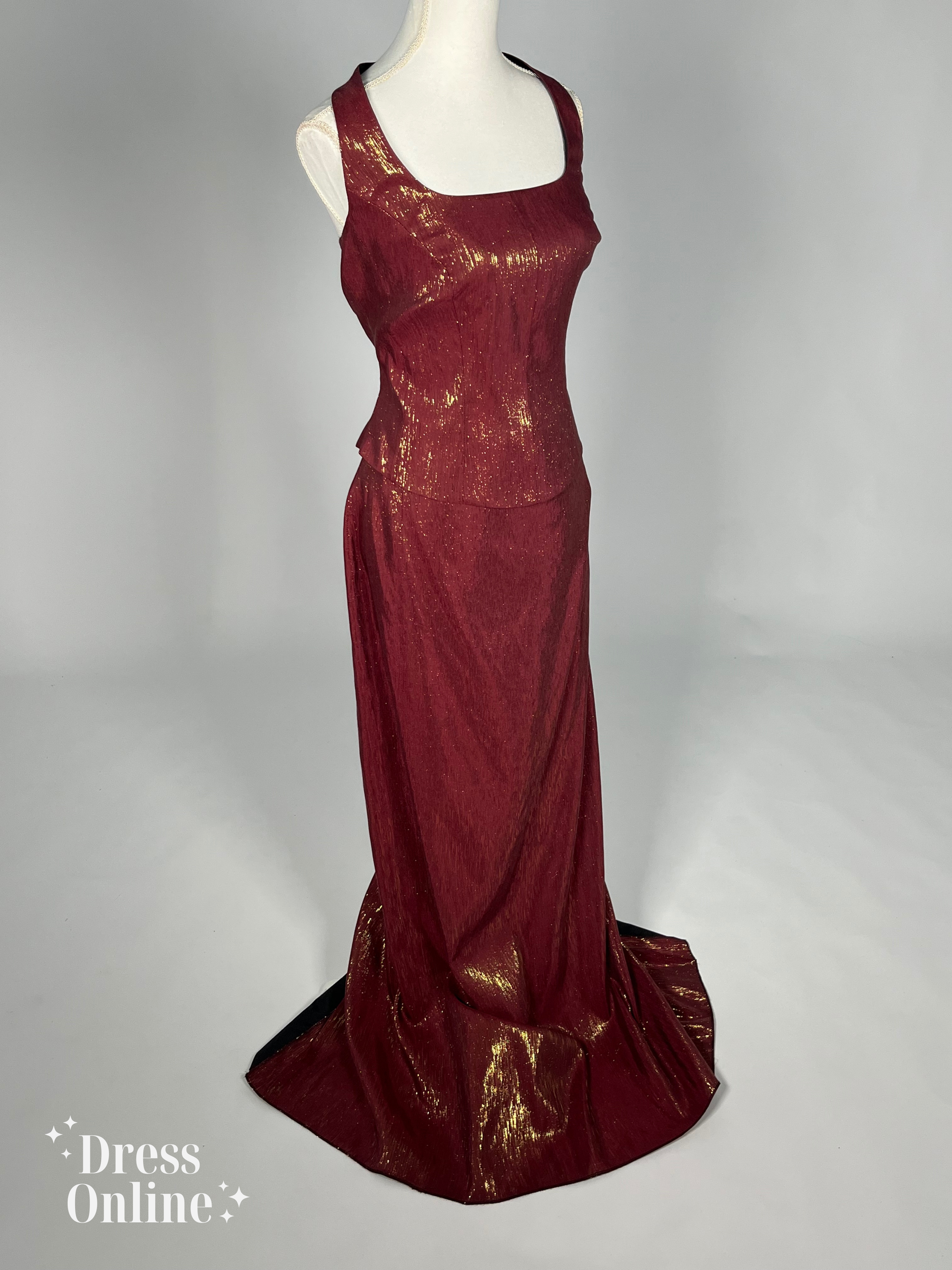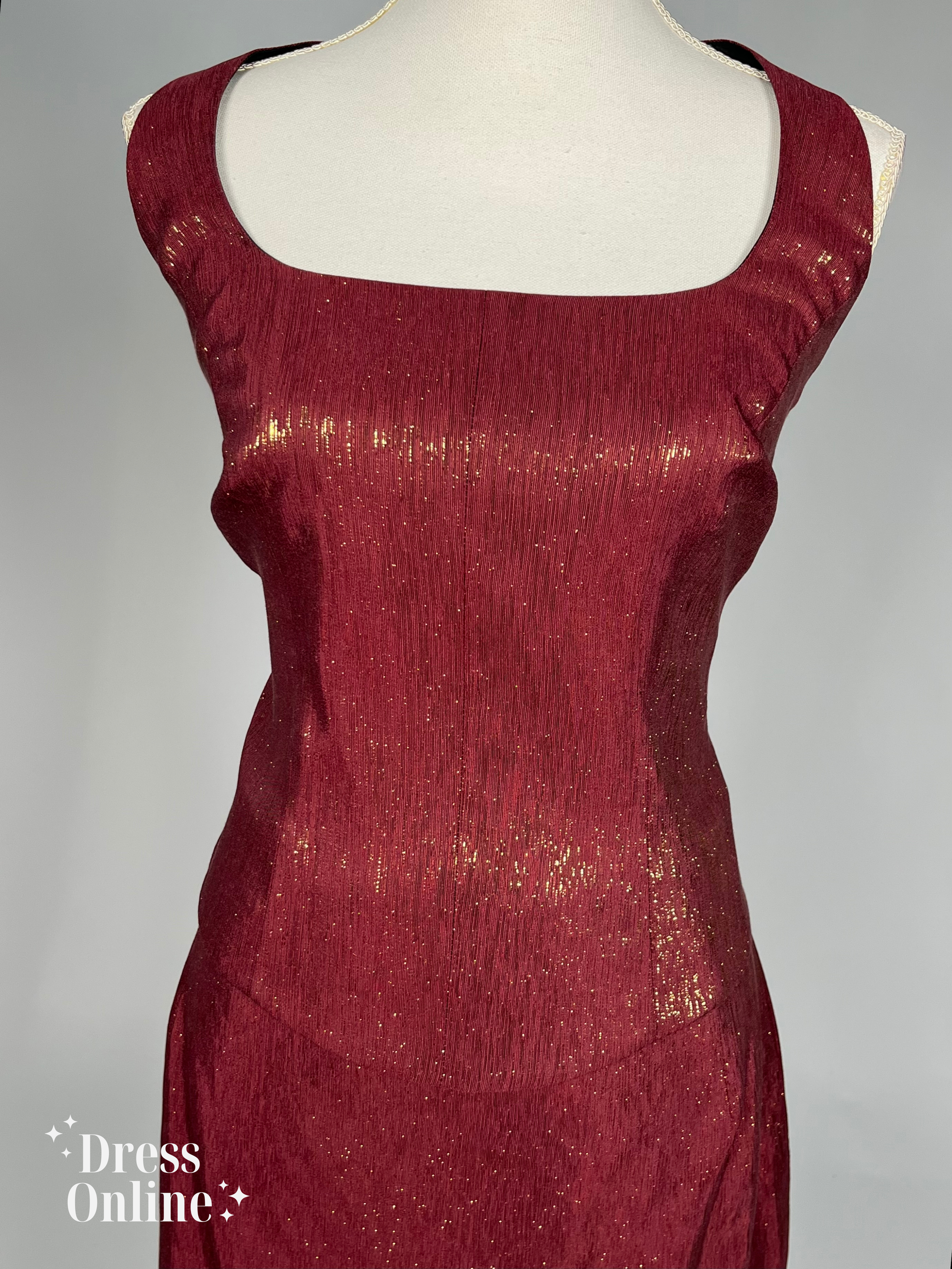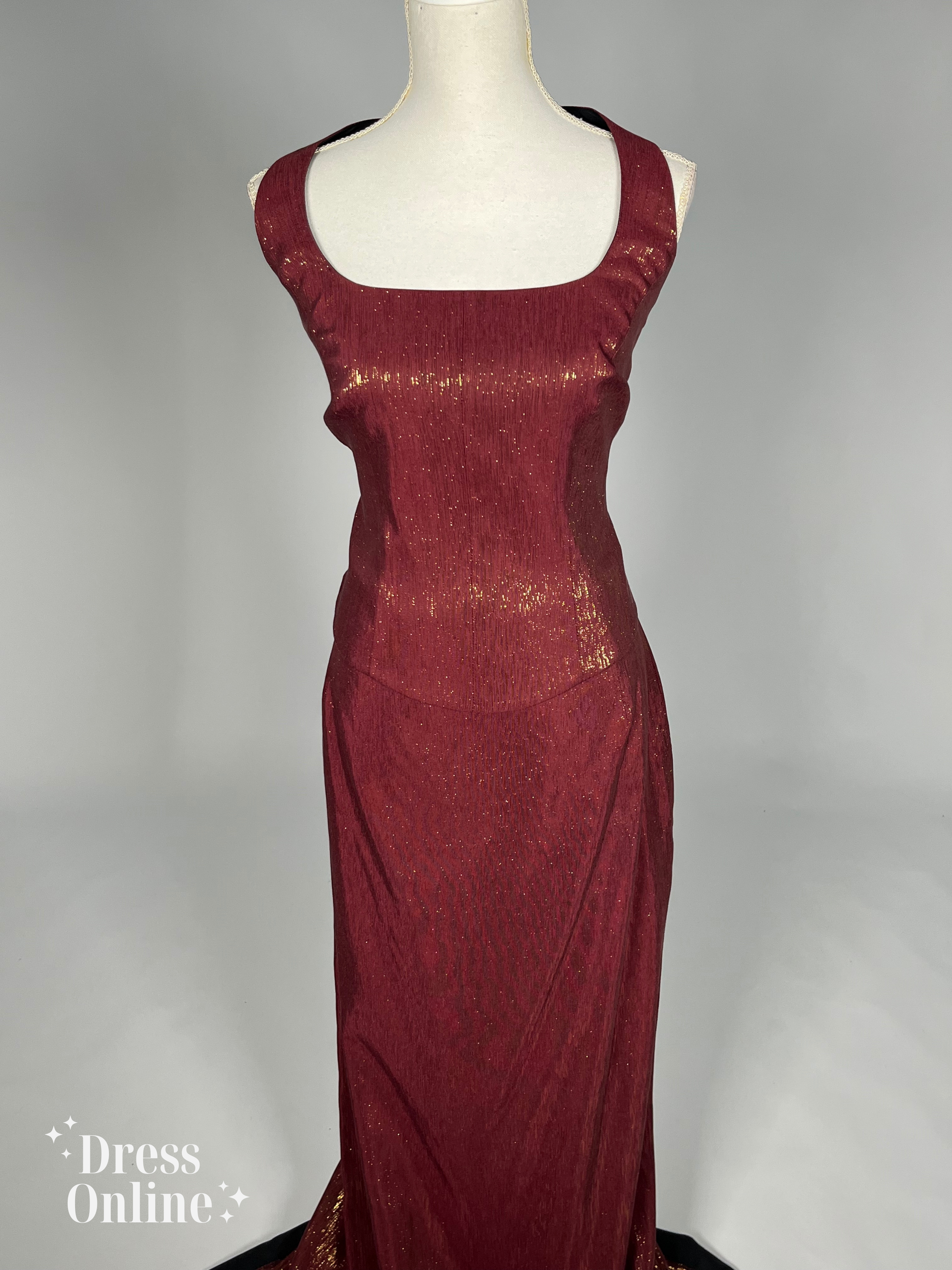 Maak een verpletterende indruk met deze schitterende dieprode galajurk. De jurk heeft een opvallende glanzende stof die prachtig het licht vangt. De flatterende vierkante halslijn en de eenvoudige, maar elegante snit zorgen ervoor dat deze jurk zowel modern als stijlvol aanvoelt. De rug is voorzien van een speels en elegant open ontwerp, waardoor je bij elke stap de aandacht trekt.
