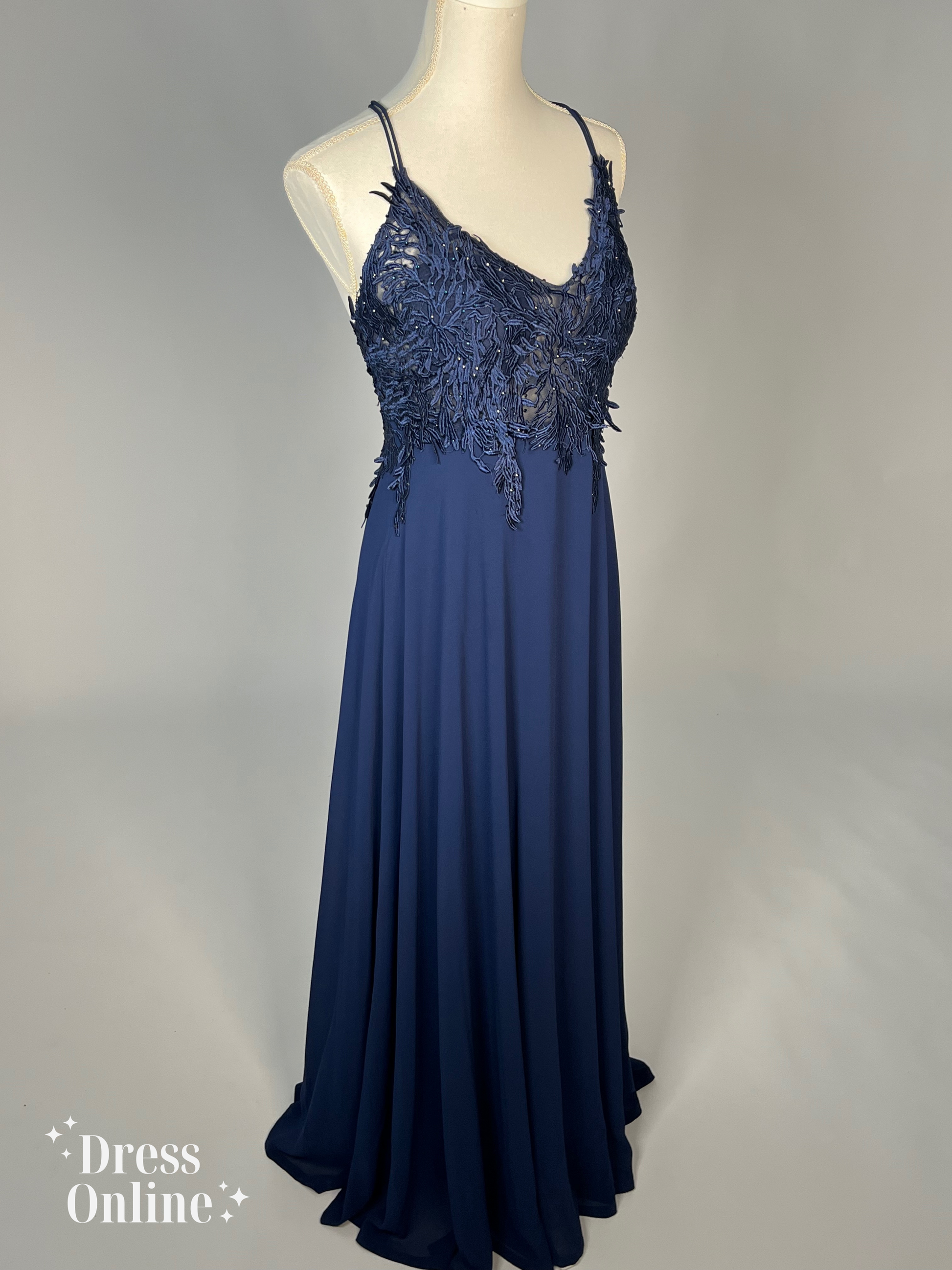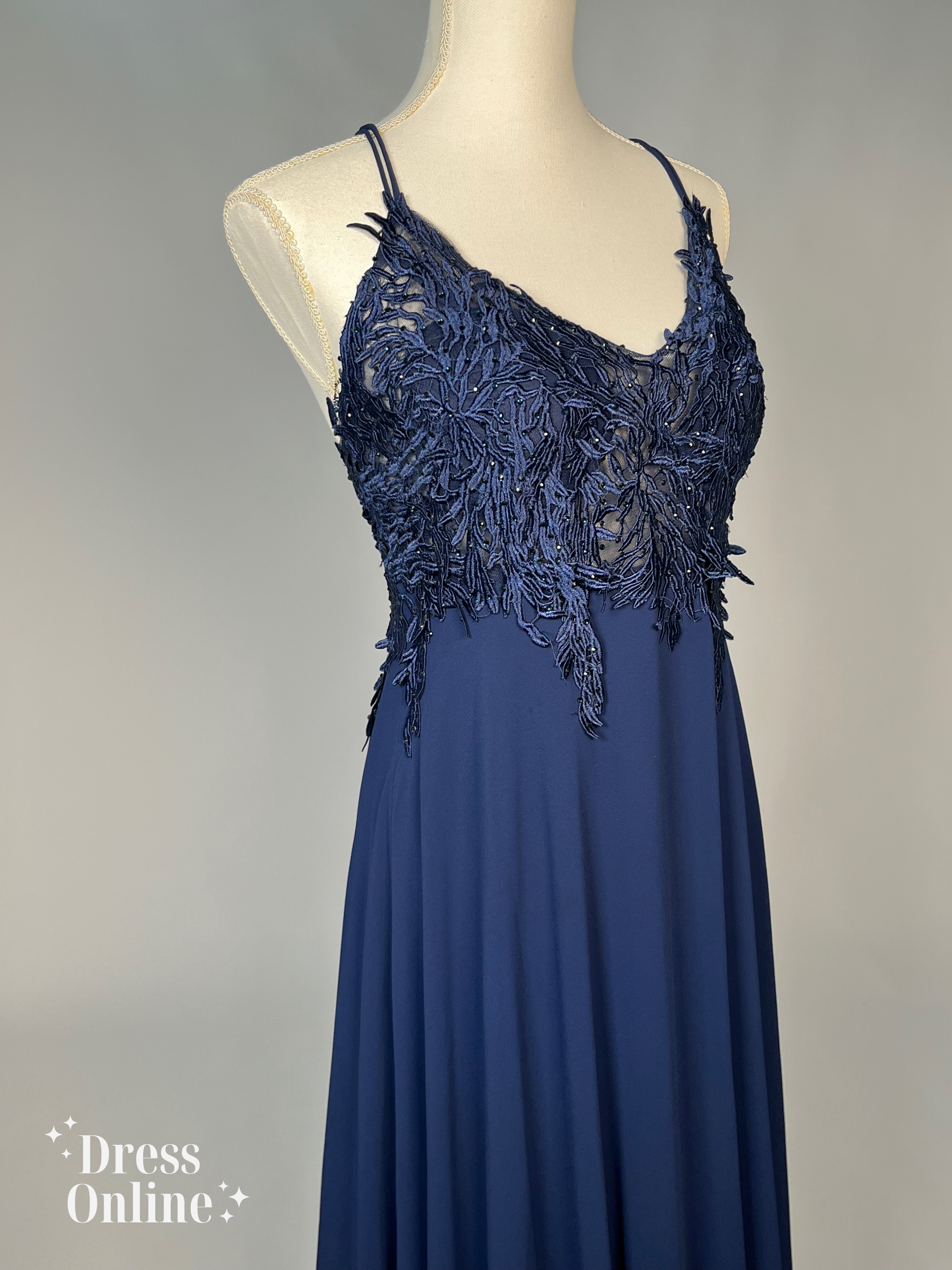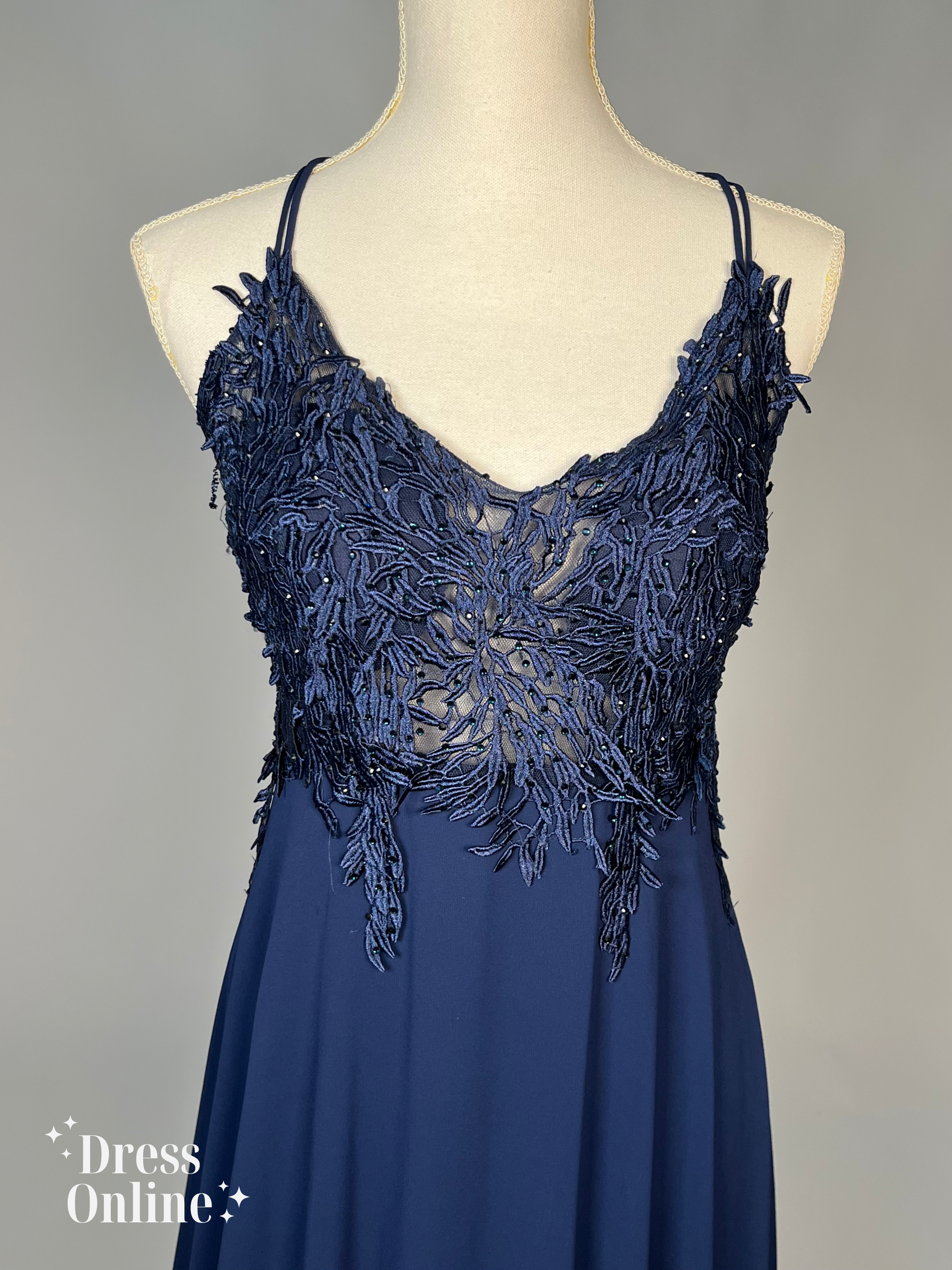 Donkerblauwe Galajurk met Kant en Subtiele Steentjes Maat M - 215