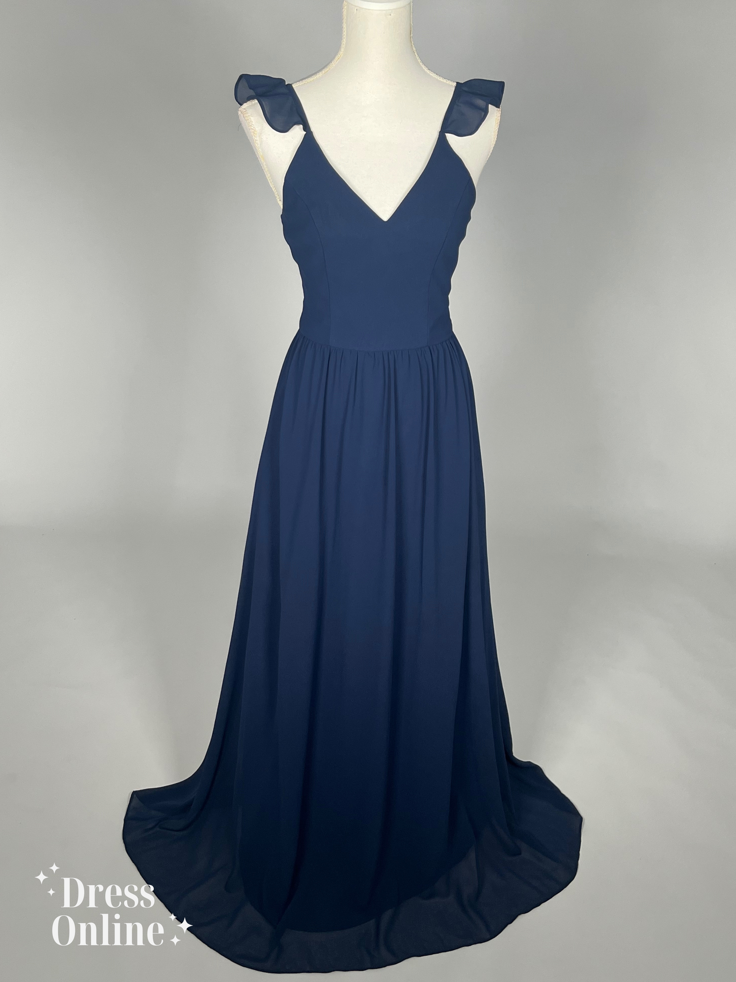 De rok valt soepel en elegant naar beneden in een vloeiende A-lijn, gemaakt van hoogwaardige chiffonstof die gracieus beweegt met elke stap die je zet. Deze jurk is de perfecte keuze voor formele evenementen waar je een blijvende indruk wilt maken.